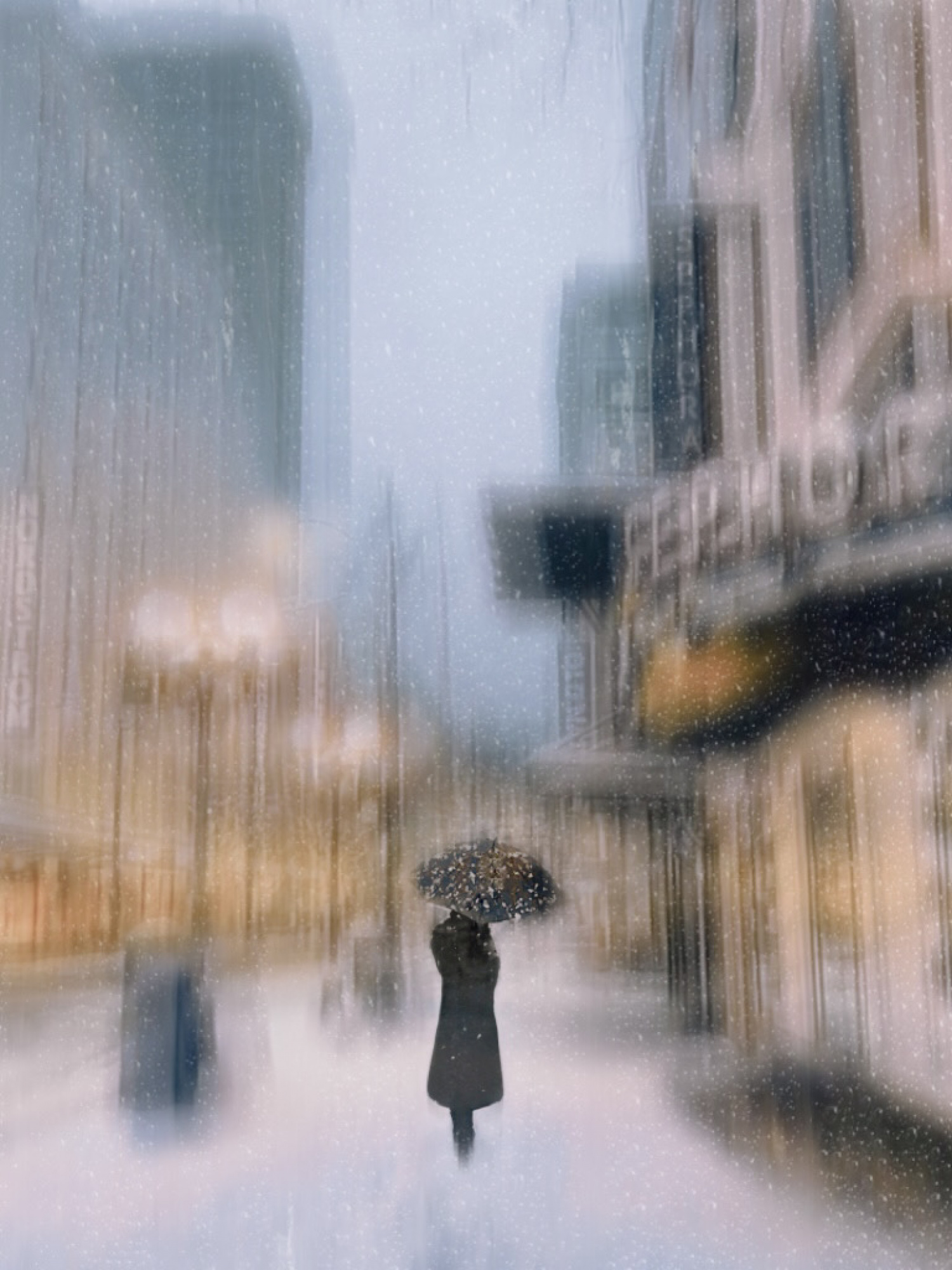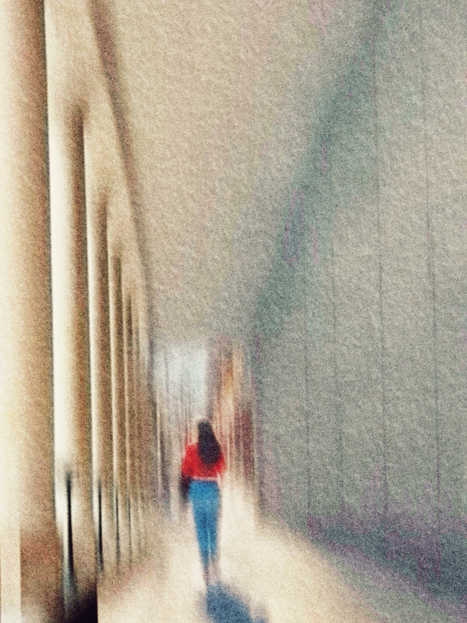 Who was she waiting for? Or was she reminiscing about a moment she would never experience again? The combination of her stillness and the misty rainy night created an indescribable sense of melancholy beauty, reminiscent of the unspoken farewells in old films. Without hesitation, I captured the scene on my phone. There was no deliberate composition or adjustment of settings — just an instinctive press of the shutter, for fear of disturbing such a fragile atmosphere.